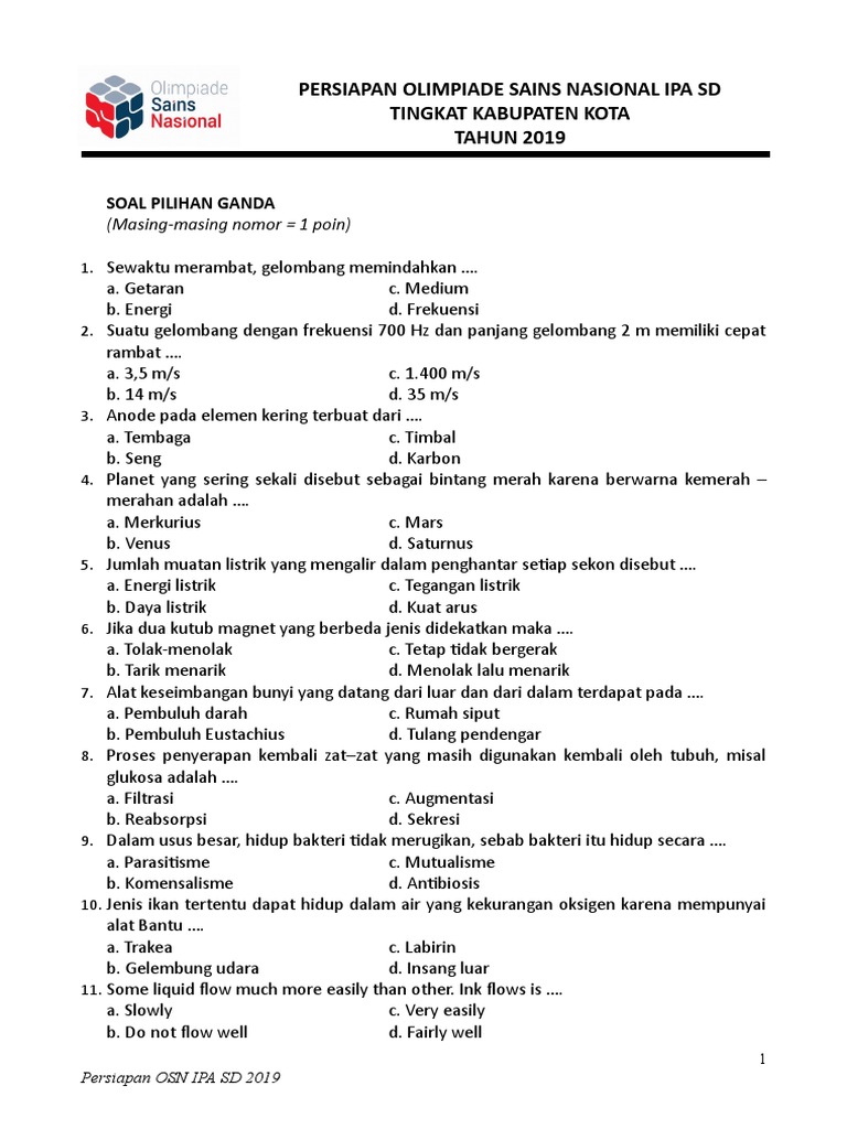 Download Soal Osn Sd 2019 Dan Kunci Jawaban Prediksi Pembahasan Informasi Pendidikan Dan Dunia Kerja from 3.bp.blogspot.com Dan pada kesempatan kali ini kami akan membagikan 50 paket soal olimpiade ipa yang terdiri dari soal soal olimpiade ipa sd tingkat kecamatan 2018, kumpulan soal olimpiade ipa sd tingkat kabupaten hingga soal olimpiade ipa sd 2018 tingkat nasional. Kumpulan soal beserta jawabannya jaringan dasar smk kelas x semester 1 (lengkap) Soal seleksi osn olimpiade matematika sd. Download soal uts/pts matematika kelas 5 semester 2. Demikianlah ulasan yang mengenai kumpulan soal olimpiade ipa sd dan kunci jawabannya. Bagaimana kabar kalian hari ini? Pilihlah jawaban yang paling benar ! Berikut ini link untuk mengunduh soal olimpiade ipa sd: